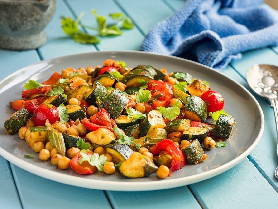 Home Vegetarian Spicy Roasted Vegetable With Chickpeas Recipe
